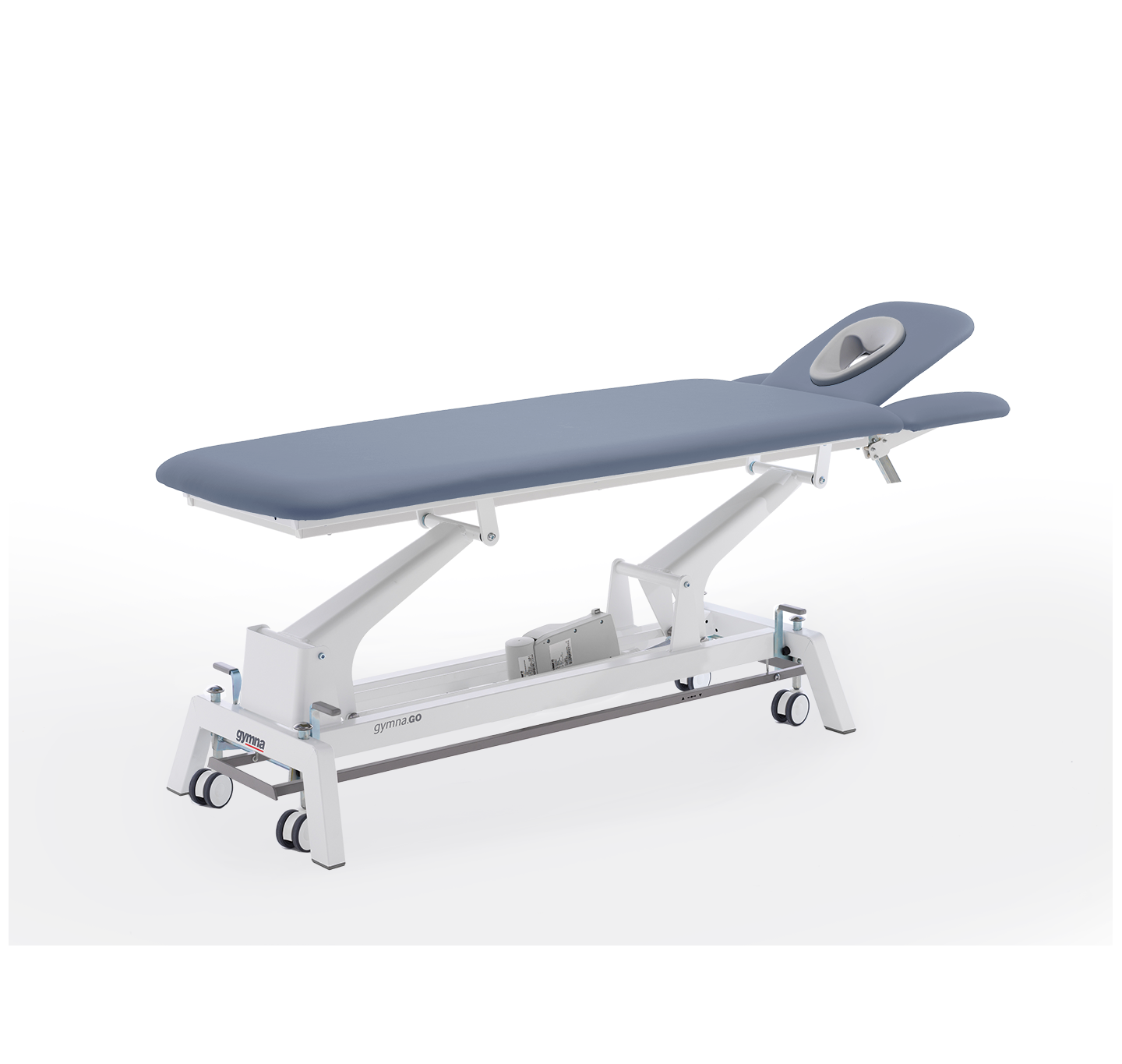 Lettino a due sezioni con poggiatesta, supporti per braccioli e regolazione elettrica dell'altezza tramite i-Control.